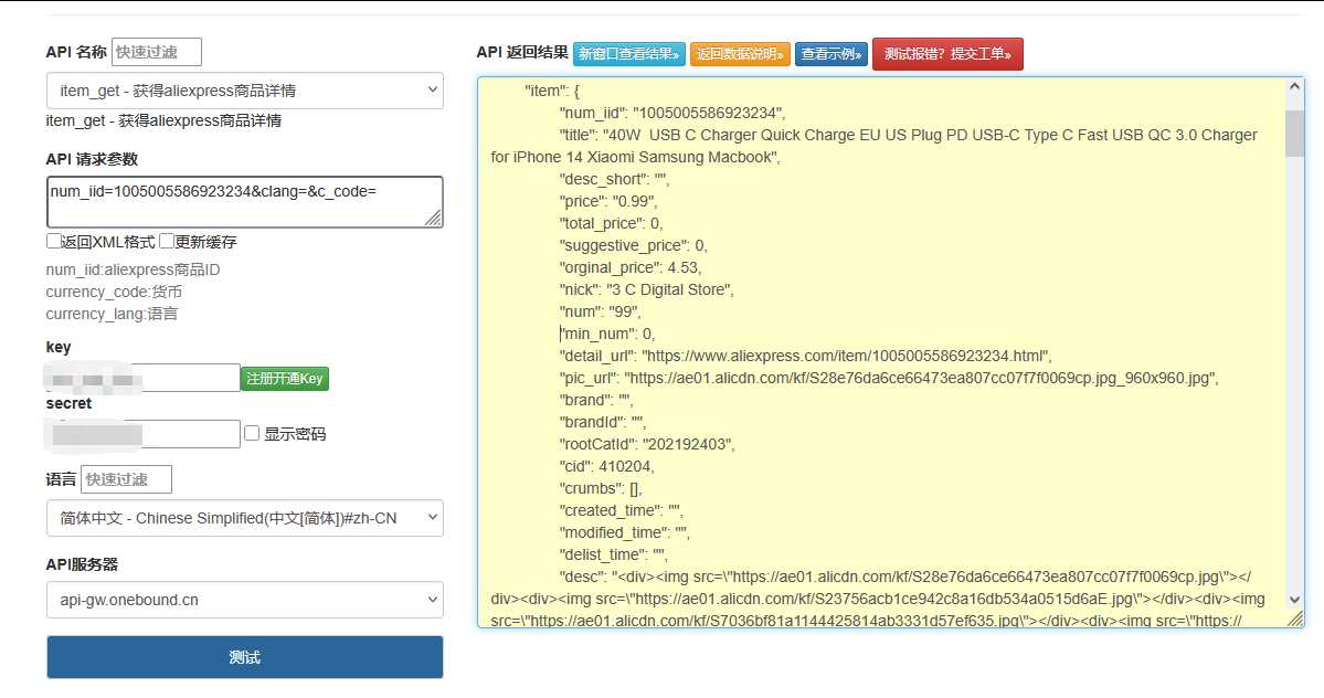 点击获取key和secret
